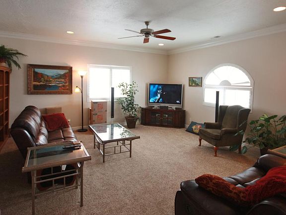 Own a spacious home in Cedar City's premiere subdivision Equestrian Point! With 4,225 sq ft of living space, the house offers many extras. The exterior is beautifully landscaped with complete sprinkler system. Enjoy the tranquil back yard on your large covered patio. Inside, find refined finishing touches of crown molding, ceiling fans, striking tile, plantation shutters thru out, an XL Masterbedroom ample closet space & a well-designed kitchen area. Enjoy abundant cabinet/storage space. Stainless steel appliances stay w/ home. Additional features: 2 furnaces, 2 pellet stoves, a shop area & food storage in basement, 2 laundry rooms & storage sheds and much more. You definitely need to see this home in person! Appraisal Done February 2015 was $355,000. Instant Equity!