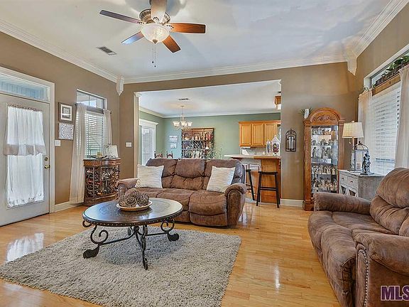 This three bedroom, two bath home has an open floor plan and a high attention to detail. Located in The Lakes at Belle Terre, this sought after subdivision provides high style and a fantastic community to live. Spacious kitchen with large tile floor, gorgeous oak cabinets, and raised bar seating. True wood floors, crown molding, custom built-ins, and a ventless gas fireplace are all examples of the great detail put into the home. Master suite has an en suite bath with double vanities, a large Jacuzzi tub, and a separate shower. Added features of the home that make it stand out, are the walk-in closets, oversized pantry, spacious laundry, covered outdoor patio, fully fenced back yard, and more!