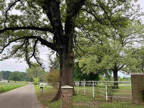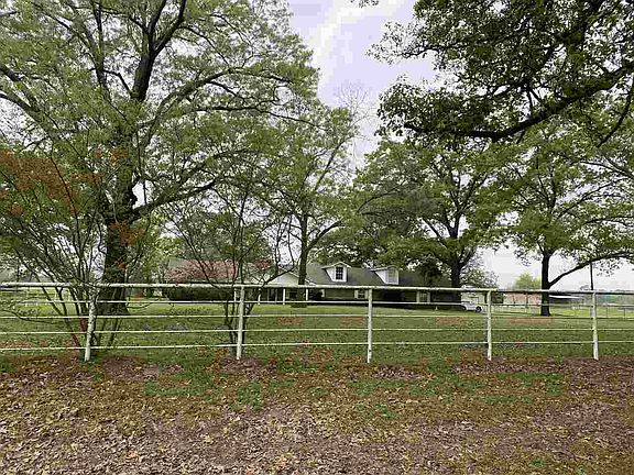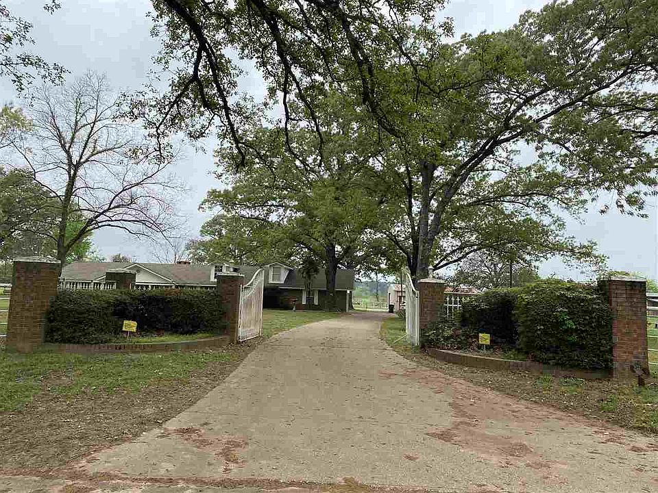 Welcome home and bring the horses and cattle to this 50 acre ranch in Hallsville ISD! As make your way past the gated entry on the nice, concrete drive you are greeted my gorgeous oak trees! The home has nearly 3000 square feet, 3 living areas plus a sun room and a great mother in law suite with bedroom and half bath separate from other bedrooms. The large room off the 3 car garage was originally used as a home business (floral shop) and could easily be again, or a game room. There's a formal room just off the front entrance plus a large den with wood burning fireplace! Several rooms have been freshly painted neutral and a with more updating, this home could be a showplace again! The 1200 square foot, insulated metal shop has a bath and wood stove. There's a huge hay barn, multiple equipment sheds and pens, including a chute off one metal building. There are 2 good sized ponds plus a smaller watering hole, the land is fenced and cross fenced for livestock. Water well disconnected when the hooked onto Gum Springs water. You are welcome to drive the land and see the beauty for yourself!