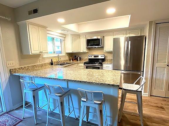 - Breakfast Bar, Pantry, Linen Closet, Walk-In Closet(s), Stone Counters, Eat-in Kitchen, Crown Molding, Shared Bath, Tub/Shower Combo, Textured Walls, Split Bedrooms