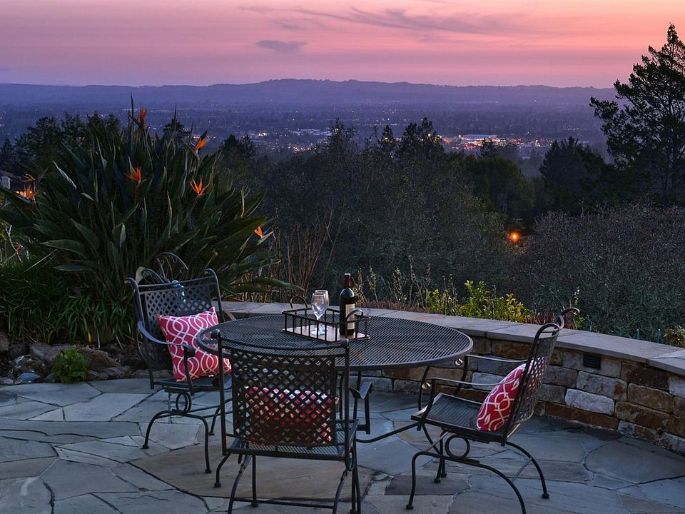 Beautiful, expansive views greet you in this special Fountaingrove home. Cherry hardwood, SubZero & Thermador appliances, and upscale details grace the main rooms, 3 bedrooms +office+bonus room (possible bedroom). Three full baths. Stunning master suite with sitting room & grand vistas! Owner-owned solar on newer roof. Sunset views & southwestern exposure warm the lovely grounds and patios, European-style terracing, rock walls & many fruit trees.
