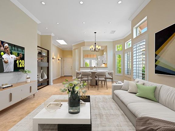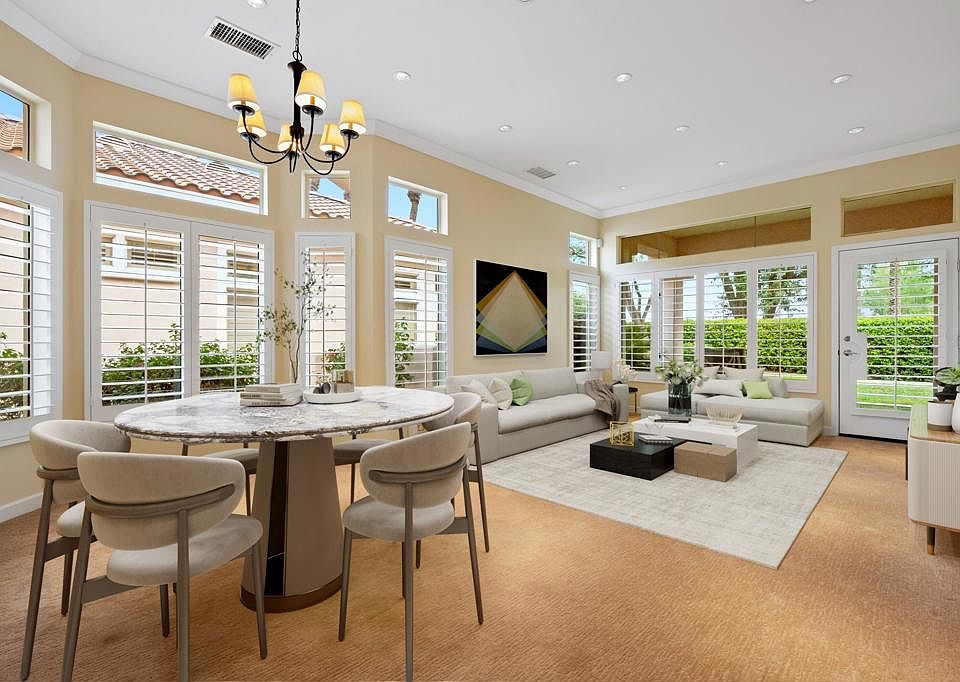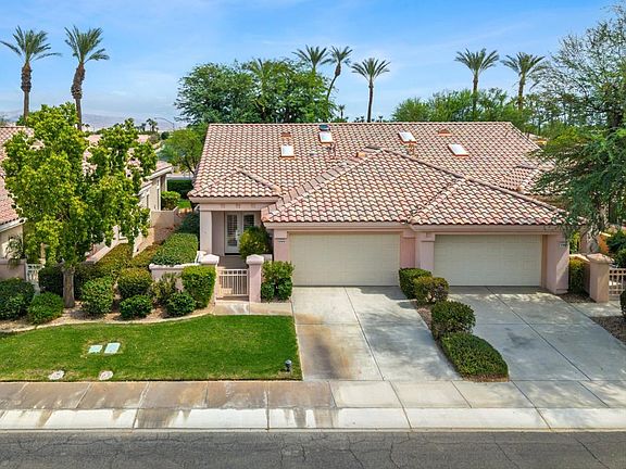 37672 Breeze Way is quite possibly the nicest Villa in all of Sun City Palm Desert. This unique and recently remodeled one bedroom, one bathroom home boasts a custom layout that has been thoughtfully reimagined and redesigned to maximize space, comfort, and convenience. This home has been meticulously maintained and it shows. There are 10 foot ceilings offering plenty of natural light through the many transom windows and custom shutters, plus there are two solar tubes (one in the laundry room and one in the garage). Some of the special features that make this home stand out are; a large primary bedroom with two closets (one a walk-in closet with California Closet system), high quality, stylish, and thoughtful upgrades to the recently remodeled bathroom featuring a large tiled walk-in shower, the addition of a linen closet, & double side by side sinks. There are wood look porcelain tile flooring in the kitchen, bathroom, and laundry rooms, an owned soft water system, custom baseboards, custom recessed lighting throughout, California Closet Systems throughout, custom crown moldings, custom closet organizers, a solar powered attic ventilation fan, porcelain tile flooring, commercial grade carpeting, newer HVAC system, updated cabinetry in the kitchen, bathroom, & laundry areas, a security system, and a newer hot water heater. Outdoors you will find beautifully landscaped front and back yards featuring tiled, private front and rear patio areas with plenty of room to relax and enjoy. Another bonus is the inclusion of all appliances (newer washer, dryer and refrigerator). This home is located just a short distance to the Mountain View Clubhouse. Sun City Palm Desert is a 55+ guard gated community with 24/7 roving security, two 18 hole golf courses, 3 clubhouses, multiple dining venues, 25 lakes and waterfalls, 20 pickle ball & tennis courts, 8 bocce courts, 2 fenced dog parks, 5 heated swimming pools & spas, miles of bike & jogging paths, and two state-of-the-art fitness centers including one with an indoor walking track. Some of the photos include virtual staging. HOA dues are billed quarterly at $1,936.50 and includes front and back yard landscaping, cable, internet, pest control service, and use of all amenities except golf which is an additional fee. There is an HOA Replenishment Fee to be paid by the Buyer at the close of escrow in the amount of $2,652. Call today to schedule your showing to see this outstanding home.