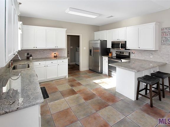 UPDATED 4 Bedroom 2.5 Bath home in Lakes at Belle Terre! Kitchen features new SLAB GRANITE countertops, STAINLESS APPLIANCES, subway tile backsplash and lots of cabinets! Great natural light in Living room with WOOD FLOORS, fireplace and high ceilings. Private Master Suite has office nook, SLAB GRANITE with dual sinks, jetted tub, CUSTOM shower and walk-in closet. FRESHLY PAINTED. Hall bath and 1/2 updated with SLAB GRANITE. NEWER light fixtures and plumbing fixtures. Welcoming front entry, great landscaping, rear porch, extended patio and fenced yard! 2 Car garage. DID NOT FLOOD
