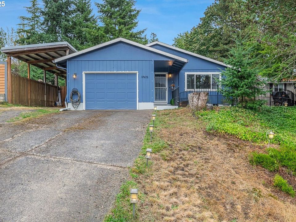 Cute updated ranch 1 block from park. Remodeled kitchen featuring stainless steel appliances, eating island & slider to covered patio. Spacious living room with wood stove. Ample parking in driveway, oversized single car garage or under carport big enough for rv parking. Massive fenced backyard w/ large shed and mature trees. New electric panel. Roof replaced in 2017.