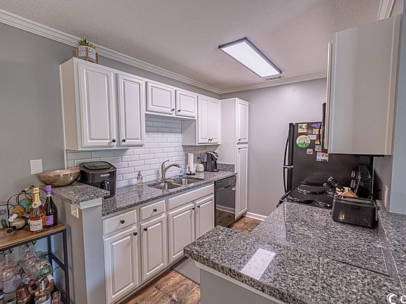 Welcome to this fully upgraded turnkey three bedroom two bath condo with a private garage at Broadway Station! Kitchen has granite countertops, tiled backsplash, and refreshed cabinets. Both bathrooms have new vanities.  This unit also features a laundry room, (not just a laundry closet!) and lots of storage! LVP flooring throughout, clean grey paint. NEW HVAC system (2019) with a 10 years warranty. Move right in!   Community is gated and has a club house with gym and a laundromat, pool, hot tub, grilling area, and car wash station. Short walk, bike ride or drive to the beach and many of the restaurants and entertainment that Myrtle Beach has to offer. Would make a great primary or second home.  Professional Photos on 8/15 Buyer responsible for verifying all measurements and square footage.