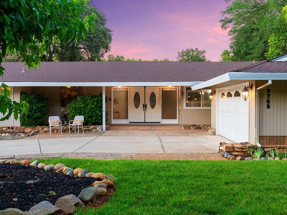 Welcome to this charming single-story 2,264 sqft home with 5 bedrooms & a sparkling POOL, blending mid-century modern and ranch-style elegance. Nestled in a fantastic neighborhood just seconds to Cameron Park Golf Course, this home offers five spacious bedrooms and two full baths, making it ideal for a big family or those looking to add their personal touch. Step inside to a large open living room featuring cathedral ceilings, beautiful wood elements, and expansive windows that seamlessly connect to a massive backyard. The updated kitchen boasts granite counters, custom cabinetry, spacious pantry, and a convenient inside laundry room. Each of the versatile bedrooms provides ample space, ideal for family, guests, or a home office. The large lot includes a huge pool, perfect for relaxation, as well as plenty of room for gardening & entertaining. Space of RV/boat storage! Enjoy great curb appeal and a prime location close to parks, shopping, dining, and entertainment, plus easy highway access! Create lasting memories in your new home that offers a timeless design ready for your personal touch!