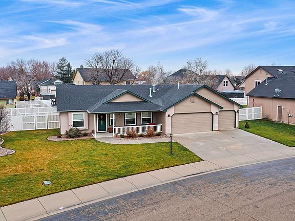 Imagine living in a beautifully remodeled single-level home in the heart of Meridian. With 3 spacious bedrooms, 2 modern bathrooms, updated living space on a large lot, this turnkey home offers both style and practicality. The fully remodeled kitchen boasts brand-new cabinetry, quartz countertops, and stainless steel appliances, including a gas range, making it ideal for everyday cooking and entertaining. New dual pane windows and patio slider. Freshly refinished hardwood floors, new carpeting, and interior and exterior paint create a cohesive and inviting atmosphere. Extensive upgrades include a new A/C unit, furnace, water heater, and gutters for year-round efficiency and comfort. The spacious 3-car garage features epoxy-coated floors, perfect for vehicles, storage, or a workshop. Just one block from Settlers Park and near the highly rated Owyhee High School, this home provides convenience, charm, and a truly exceptional location.
