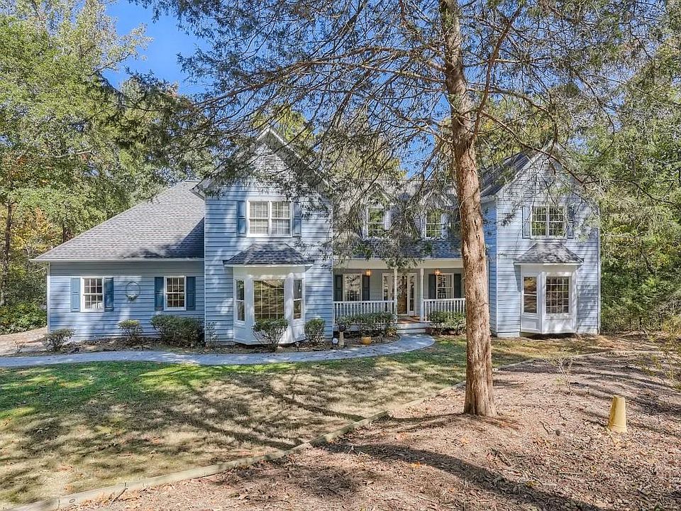 Come see this private lot home with beautiful views of 4+ acres and a spring fed lake for fishing. Featuring a quarter mile paved driveway that provides a serene view of the property before arriving at the 2-story with basement, 2 car garage home. Entry foyer with hardwoods and vaulted ceiling living room with an all brick fireplace. Lots of windows and light, 9 ft ceilings on the main floor, 8 ceiling fans throughout the home. Kitchen with hardwood flooring, stainless appliances and a separate sun filled breakfast area. Step into the sunroom (photo coming soon) with a view of your wooded backyard and lake or relax on the deck. Primary bedroom on the main has a large window with a backyard view, a heated bathroom floor with double vanity, soaking tub and walk-in shower. Secondary bedroom on the main level is perfect for an office or guest suite. Make your way to the second floor for two additional ensuite bedrooms with tons of storage and large closets. Finished part of the basement includes an in-law suite with a separate entrance while unfinished space provides a built-in workbench, mud sink and boat garage with plenty of space to work on future home projects. Minutes from restaurants, shopping and parks. This home is a gem with great potential!