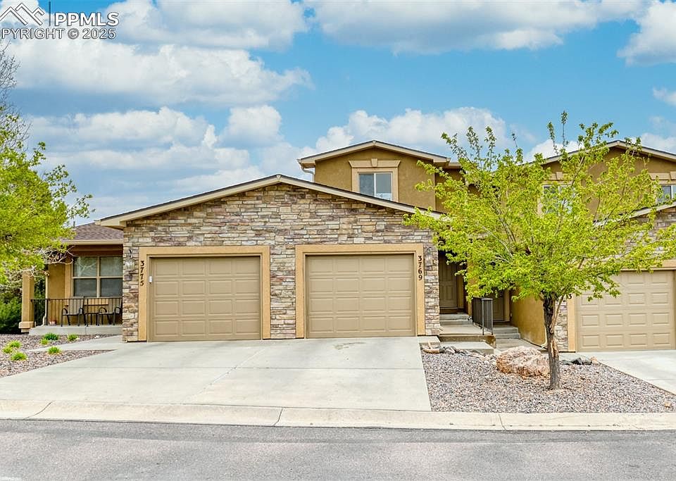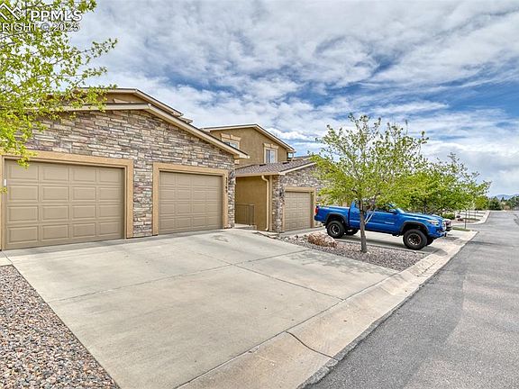 Naturally bright townhome complete with attached garage tucked at the edge of a well-kept, 32-unit community in the desirable Carefree neighborhood, offering extra privacy, peaceful surroundings, and direct access to open space and the Homestead Trail! Inside, you’ll find a bright and open floorplan with hardwood floors in the entry, powder room, and kitchen. Kitchen features an updated sink and faucet and charming breakfast bar highlighted by a beautiful lighted arched architectural feature—a unique design touch that elevates the entire living space. Spacious great room-style living and dining area, giving you flexibility for furniture layout and gathering with guests.The living area is anchored by a cozy gas fireplace and opens to a low-maintenance composite deck with sweeping city views—perfect for watching fireworks, enjoying the fall colors, or relaxing under the evening lights.Upstairs, you’ll find two spacious bedrooms, including a primary bedroom with direct access to a full bath, which also features hallway access and a skylight that fills the space with natural light. The second bedroom captures a view of Pikes Peak, offering a daily dose of mountain charm. You’ll also find a laundry closet with electric hookups conveniently located on this level.The unfinished walk-out basement provides ample room to expand, with a rough-in for a future bathroom, laundry sink, and a concrete patio—making it easy to tailor the space to your needs.And location-wise, it’s a gem. The home backs directly to the Homestead Trail, a 1.3-mile loop trail that’s ideal for walking, running, and dog-walking. With connection points to Rudy Park and Rudy Elementary School, this quiet, creekside trail is beloved by locals and rarely crowded.Located on a quiet cul-de-sac with off-street guest parking nearby, this home offers the perfect blend of nature, comfort, and convenience, all just minutes from Powers Blvd and First & Main Town Center for dining, shopping, and entertainment.