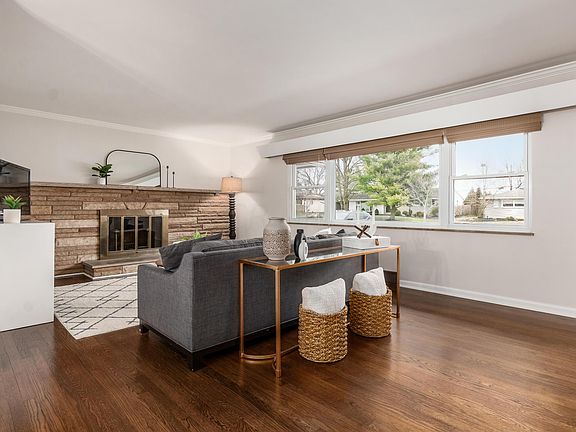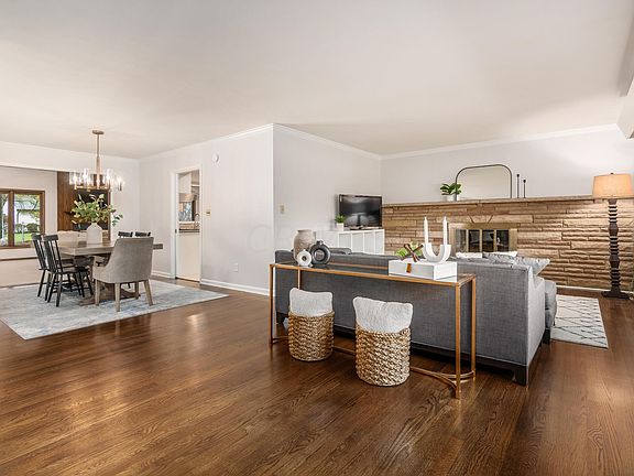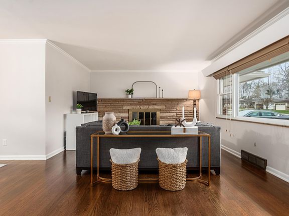 Welcome to this beautiful ranch home! The foyer opens to the living room, highlighted by a stone fireplace and refinished wood floors. New light fixtures add modern touches throughout the house including in the dining room. The spacious family room features vaulted ceilings with wood beams, a fireplace, large windows and built-ins. Stainless steel appliances and white cabinets give the kitchen a fresh feel. The finished basement adds extra living space. Enjoy relaxing in the screened porch with access to the patio and backyard with lots of landscaping updates to keep it looking its best. This home's exterior was painted in 2023 with a new color to compliment the brick. Much of the interior was also recently painted. Two car garage plus a new concrete driveway with extra parking area.