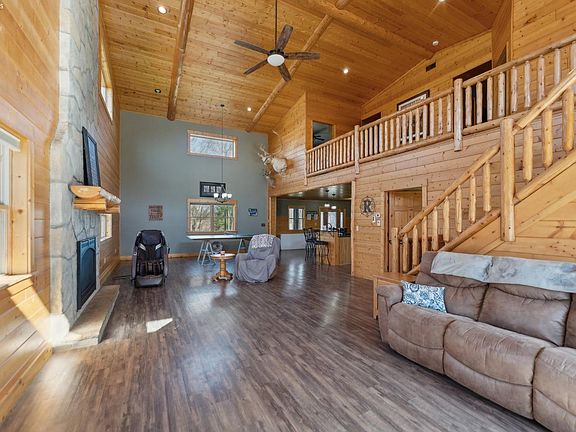 Nestled In Serene Privacy On 3.2 Acres, This Stunning Barndominium Offers The Perfect Blend Of Rustic Charm & Modern Living. Boasting 5 Spacious Bedrooms & 3.5 Baths, This Home Is Thoughtfully Designed For Comfort & Functionality. The Heart Of The House Features An Open-concept Kitchen Flowing Into The Living Room, With Soaring High Ceilings. The Main Floor Hosts A Large Laundry Room & A Master Suite Complete With A Master Bath And An Expansive Walk-in Closet. Upstairs, You'll Find Well-appointed Bedrooms, Each With A Closet, Alongside An Office Space, A Workout Room, & An Entertainment Room. Craftsmanship Shines Through With Beautiful Woodwork, And The Attached 3-car Garage Provides Ample Space For Vehicles And Storage. Outdoors, The Property Transforms Into A Recreational Haven, Featuring A Shed, Chicken Coop, Back Patio With A Built-in Stone Fire Pit,a Volleyball Court, And Even A Zip Line For Endless Fun. Fiber Optics Internet Ran To The Home !