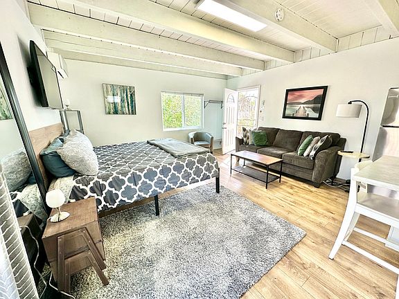 Full kitchenAir-conditioned studio apartmentQuartz countersKing bed couchAc and heatWalk-in closet