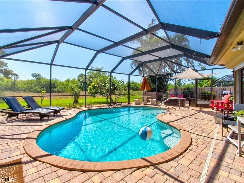 NEWLY DESIGNATED PARK IS YOUR BACKYARD in this central location -- close to downtown Cape Coral. PARK INCLUDES PONDS, 5 MILES OF WALKING TRAILS and tons of green space. This beautiful, exceptionally well-maintained HOME has it all -- in-ground screened-in pool, TWO Master Suites, Beautiful kitchen with all upgraded stainless steel appliances & custom cabinets, Large living area, Circular driveway with sideload garage...spacious dining room overlooking the screened-in pool. Study, New Air Conditioner 2023, Newer roof certified in 2023. Inside, large air conditioned large laundry room. Outside area lives big and offers an extended view of the PARK plus a large area ideal for a fire pit. Whole home security system. Storm Shutters. This home must be seen to be appreciated. Convenient to everything that makes living in Cape Coral great! Make your appointment to see this home today.