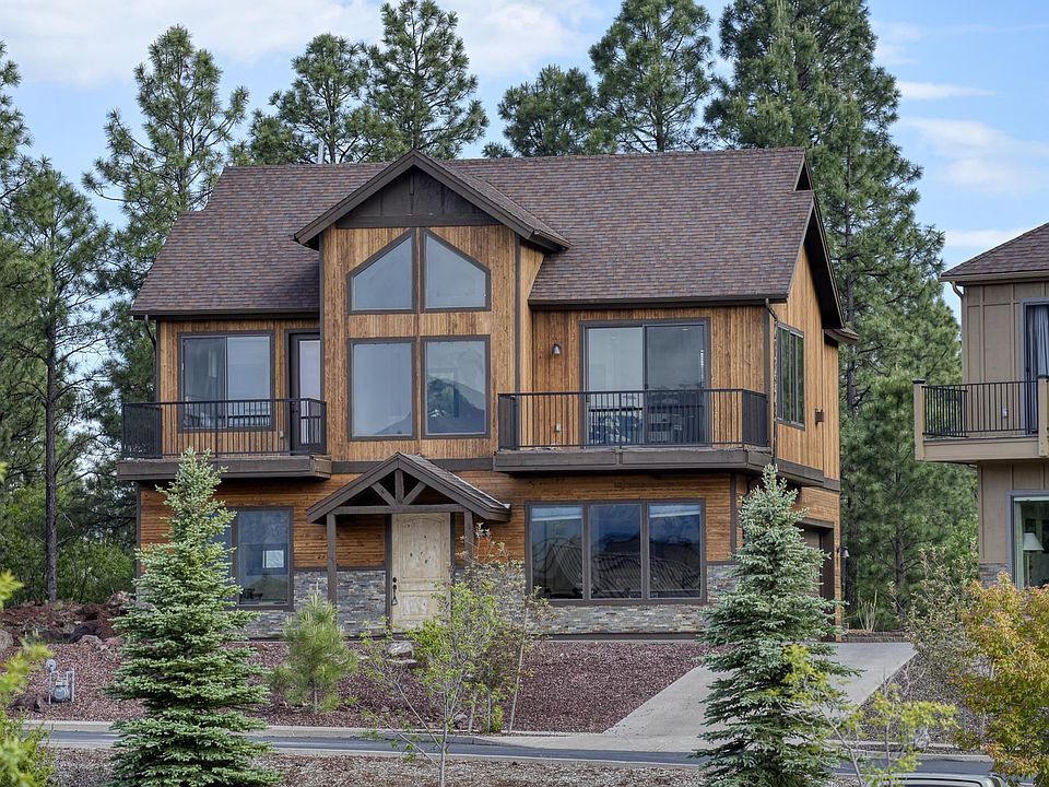 Stunning home in Flagstaff Ranch Golf Club with some of the best views. Quality greets you from the moment you step inside. This home which is situated on near the 1st hole features granite counters, travertine tile flooring, custom cabinetry, stainless appliances, stacked stone fireplace, central a/c, floor to ceiling windows, and the list goes on. Step out onto one of two elevated decks to enjoy sweeping views of the surrounding fairways and greens, the San Francisco Peaks, a lake and the surrounding mountains and forest. Once out of the house you are a short walk away from all that Flagstaff Ranch has to offer. This includes golf, dining, tennis, fitness facility, pool clubhouse, community center and more. Golf Membership not included price.