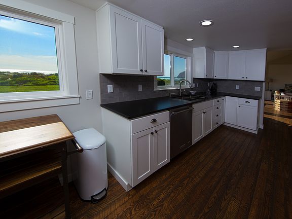On the beach, at the foot of majestic Neahkahnie mountain rests your family's dream get away. Our completely remodeled, beautiful 6 bedroom 4.5 bath home sleeps up to 18 comfortably. VRBO #1063713 You can enjoy unobstructed views of the ocean and Neahkahnie mountain throughout the home. A spectacular 7 mile beach is accessible out the back door. Collect sand dollars and drift wood, bird watch and enjoy the surf as you take a leisurely stroll down the beach to the nearby village of Manzanita. When you enter our home you will be inspired by the vaulted ceilings, the fireplace and the spectacular view. The expansive kitchen has a large dining table perfect for sunset dinners for the whole family. Kids will love the bunkroom! The home is equipped with televisions, DVD players, wireless internet, comfortable mattresses and luxurious linens.