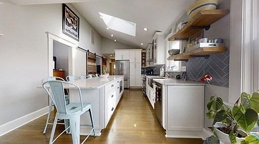 Stunning renovation featuring custom designer kitchen with cathedral ceiling, custom cabinetry and high end appliances. This home was brought to the studs and completely remodeled to an open concept floor plan. This is an excellent value with 3 bedrooms, living room with new fireplace, in unit laundry and garage parking. The living room features a new gas fireplace and the bathroom completes this gorgeous renovation. Beautifully landscaped grounds, a private porch and plenty of additional outside space for entertaining your guests. Located near the Waverly to Harvard Bus, parks, Fresh Pond and the exciting development of Arsenal Yards, there are few locations that offer more accessibility and activity options.