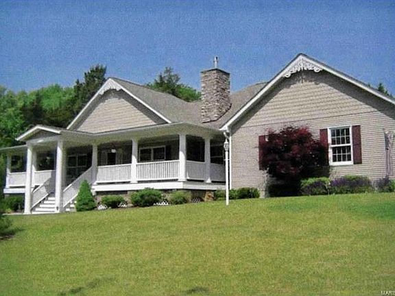 If you are looking for top quality everything, make sure you take time to see this home. Nestled on 4.91 ac. of trees for privacy. The first thing you see is the massive maintenance free wrap around porch. The beautiful front door greets you, & leads you into the spacious living room w/ hardwood floors & a floor to ceiling fireplace. Crown molding everywhere. The large dining area leads to the spacious kitchen w/ 42 in. custom cabinets by Shaw. There are corian counter tops and a center island that seats 3. The master bedroom has a walk-in closet & bath w/ jet tub and separate shower, a door that leads to the covered patio There are closets everywhere for lots of storage. You'll be impressed by the hand made Kirkwood staircase, leading to the huge family room w/ fireplace & room for those large family gatherings, 2 sets of doors lead to the large patio. 24x24 garage, 45x30 shed w/concrete floor & 200 amp elec. heat, AC, 12x12 RV door & more. 6" concrete drive, stocked Lake privileges