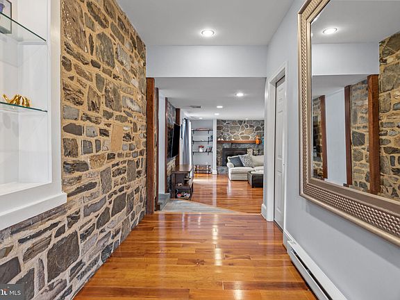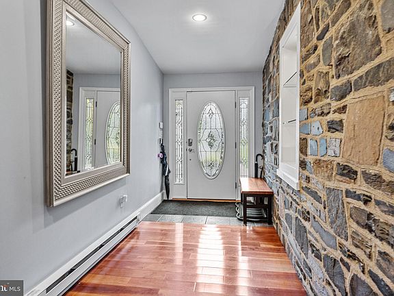 Welcome to this stunning home with a mix of old-fashioned charm and modern upgrades, tucked in and set among trees. As soon as you walk in the front door, you'll be struck by the owner's pride in their property. Hardwood floors and an exposed stone wall lead into a cozy sunken living room with a wood burning fireplace that's filled with natural light thanks to the many windows and French doors. The remodeled gourmet kitchen is a chef's dream, with quarts countertops, high-end appliances (including a built-in Sub-Zero refrigerator, dual Thermador ovens, and a Viking Professional 6 burner gas cooktop), and an oversized island with a breakfast area. The formal dining room is extended and features a large bay window and a wood-burning fireplace. The first floor also has a family room, an adjacent den, and a full bathroom with a shower stall that's perfect for pool season. Upstairs, there are four bedrooms with stunning hardwood floors. The master bedroom suite is especially impressive, with French doors, vaulted ceilings, open trusses, skylights, and a loft area. The master bathroom is equally luxurious, with Travertine tile covering the walls, double sinks, an oversized frameless shower stall, a soaking tub, and a large walk-in closet. There are three more spacious bedrooms, two of them have walk-in closets, as well as a hall bathroom and a laundry area. Outside, the fenced-in backyard is perfect for outdoor entertaining, with a paver/trex patio that includes a built-in spa Jacuzzi, a recently renovated pool with a new pool heater surrounded with safety fence, a fire pit area, and a storage shed. The home also has a two-car garage with an EV charging system for Tesla level 2 (which can also be used with other car adapters) and attached large coat closet, double staircase, large unfinished basement, a full house water filtration system, two water heaters, baseboard heat, multiple HVAC zones, a 20kw generator, new windows with custom blinds, a new roof, a new fence, and a security alarm system. The location is very convenient in a historic Bucks County, with easy access to parks, playgrounds, major roads, shopping, dining, and the highly rated Council Rock School District.