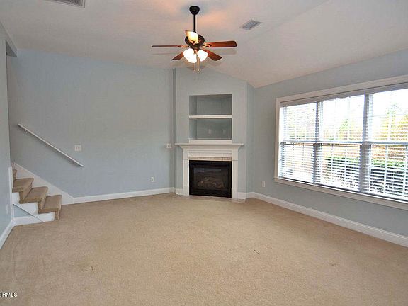 Enjoy a low maintenance lifestyle in this well maintained Castle Bay Townhome in Hampstead. Located between Wilmington & Jacksonville, this move in ready home has 2 bedrooms, 2 bathrooms and open floor plan with neutral paint. The living room has corner fireplace with gas logs, and flows into dining room. Screened porch off of living room provides a quiet retreat. The kitchen has a breakfast bar, tile floor, newer sink and faucet, and pantry. All appliances convey, including refrigerator, washer and dryer. A bright bedroom and bathroom complete the first floor. Upstairs is a spacious master bedroom, bath, and two dormers which are suitable for office, hobby space, whatever meets your needs. Community golf, pool, clubhouse available to join for separate fee. Topsail School District