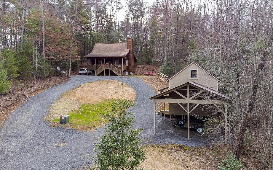 10 +/- acre homestead, unrestricted, sold furnished with custom Amish furniture! Just bring your suitcase! New interior paint, and fixtures, Circle driveway added. If you've been looking for space to spread out, then you may be ready to come home to 377 Cedar Mountain! This gentle wooded land can be kept as is for a woodland paradise or cleared to create your own mini or hobby farm. Detached workshop has so much space for your tools with, room over head for storage. Covered area for toy parking and wood storage. Firepit area and TWO porches perfect for entertaining a crowd or for cozier get togethers. Inside, this cabin has an open living/kitchen space with a stone gas log fireplace and a master suite on each level! Simplify your life or escape to the mountains and live the life you dream!