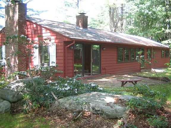 This rustic expanded Ranch is a great starter home in a fantastic commuter location, close to Idylwilde! Situated on an acre lot that includes a shed, screen house, & mature trees; the home is elevated & set back from the road with a large, shaded, private back yard. Both the family & living rooms have a fireplace, wide pine floors, some knotty pine walls, beamed ceilings, & exterior access to the side yard & patio area.There are 3 bedrooms, 2 full baths, a sec. sys. & a 1 car heated garage.