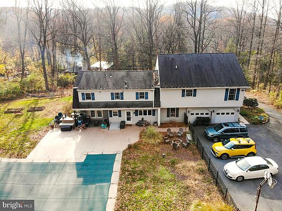 This beautiful 5 bedroom 3 full and 2 half bath home is nestled in scenic seclusion with a large yard, plenty of parking, in-ground pool, mature landscaping and plenty of space to enjoy. This property has so much to offer. The first floor of this home is great for entertaining. It has a huge great room filled with natural light and cathedral ceilings that flows into the large dining room. Off of the great room is a nice sized office with separate entrance. The kitchen is large and open with plenty of cabinet space and granite countertops. This level also has a nice sized family room with a wood burning fireplace and a half bath. The second floor offers two owners suites, both are very large and have their own full bathrooms and large closet space. The other three bedrooms on this level share a full bath. The basement is just about 950 sf and although it is unfinished along with one half bath it is studded out and insulated and ready for your game room or man cave. Completing the home is a large two car garage with an underground service pit. This 1.5 acre lot has a fenced in ground pool, large patio, carport and heated gutters with gutter guards. Enjoy the cherry and grape trees. Nature is at your backdoor and you are only minutes from shopping, restaurants and schools.