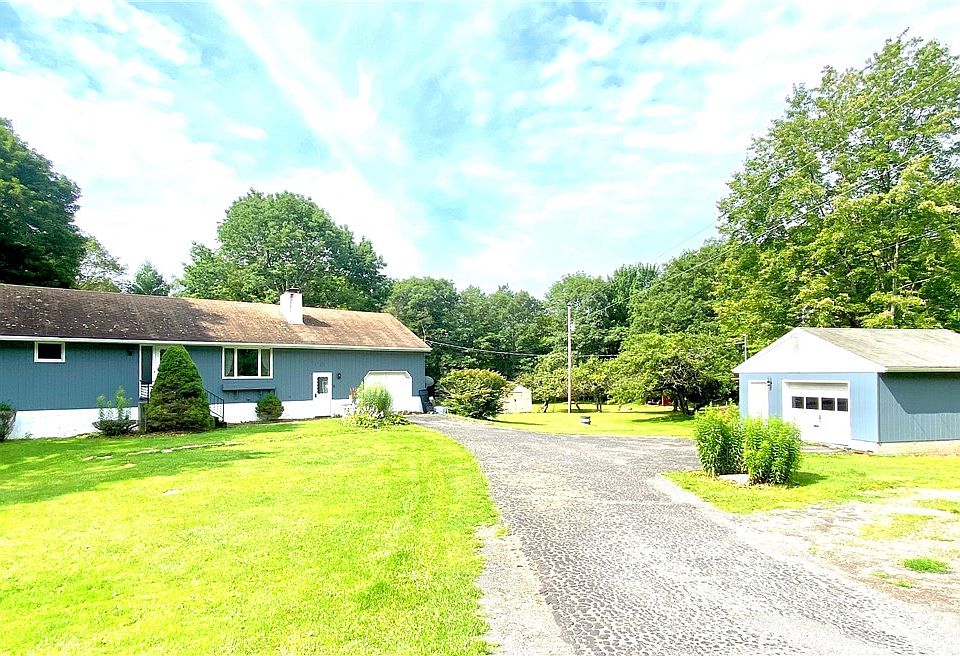A RARE FIND!!! Situated on 11 acres in a PARK-LIKE SETTING just outside of Stamford sits this turn-key home. Exterior highlights include a HUGE PRIVATE BACKYARD, Apple Trees & great landscaping, PRIVATE COVERED BACK DECK, woods with trails throughout, detached garage, & attached 1-car garage w/WORKSHOP, STORAGE AREA, HEAT, ELECTRIC & WATER! This truly is a HUNTERS PARADISE! On the inside you'll find one level living featuring ample storage space, two good sized bedrooms with big closets, full bath, kitchen, formal dining room, and a large living room w/fireplace. To top this all off there is also a HUGE BASEMENT JUST WAITING FOR FINISHING TOUCHES W/ ADDITIONAL FULL BATH, LAUNDRY ROOM AREA, & COMBINATION WOOD/OIL FURNACE! This is totally turn-key and opportunities like this one don't come around often - don't hesitate!