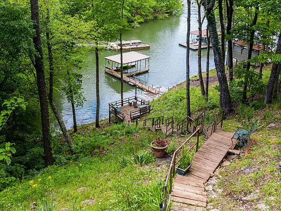 Come see this Smith Lake home with a rustic Contemporary twist and beautiful water view. The colors, wood walls and ceilings Create a warm and inviting atmosphere. The open concept with three bedrooms and 2 baths is perfect for entertaining. Next visit the inviting screened in porch that everyone is looking for. The detached garage host lots of space which includes a bath and an office. If you