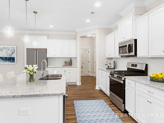 Behind the Kirkland's lovely, full-brick exterior lies a beautiful home. The foyer immediately opens up into a stunning, open-concept living space, combining the dining room, family room and kitchen. From the stunning island to its endless counterspace, the kitchen is perfect for entertaining, and the covered porch is always ready to take the party outside. The Master Suite features a lovely, bright bedroom and Master Bath, complete with shower, bathtub and walk-in closet. The plan's three-car garage lets everyone park under the same roof, and The Kirkland's flexible floor plan lets you make it your own. From an optional bonus room to an extended covered porch, you've got every chance to make The Kirkland your dream home! Just know that offerings vary by location, so please discuss our standard features and upgrade options with your community's agent. *Attached photos may include upgrades and non-standard features.