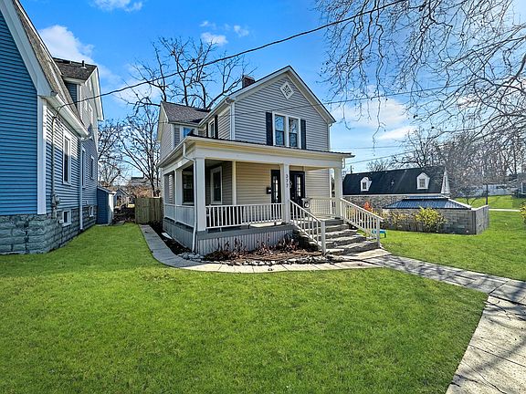 This two story, 3 BR, 1.5 BA, home is adorable!! Home features a wrap around front porch, great rear deck, and fenced in backyard both ideal for entertaining, children or pets. A large living room has a tiled fireplace with mantel (seller has never used) The tiled floors, backsplash, white cabinets, and stainless steel appliances make the kitchen bright and inviting! The home has a half bath with laundry closet on the first floor. The primary bedroom offers a spacious bedroom with large closets. Upstairs bathroom has a clawfoot tub. Updates to the home in the past five years are new roof, new facia and gutters, new breaker box, new plumbing, sealed basement, new sump pump, new paint, new appliances, garbage disposal, refinished clawfoot tub, new tile floors in upstairs bathroom, new interior doors, paint to porches and privacy fence. Being sold as-is but inspections are welcomed. Buyer to verify schools. Will need a 45 day close date. Please allow 2 hours advance notice for showings.