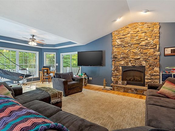 Privacy galore in this sprawling 4 (5) bedroom ranch home on 11.5 acres! The WOW factor when you walk in is the vaulted ceilings in the Living room/ dining area with a floor to ceiling stone gas fireplace! Walls of windows and sliders out to an inviting 900 sq feet of composite party deck! A Sun drenched country kitchen & morning room with a plethora of white cabinetry, stainless appliances, quartz counters & walk- in pantry! 3 Good size bedrooms including the Primary with primary bath- all with gleaming hardwoods & tons of closet space! 2 car garage - extended private driveway to shed - and NEW concrete patio area around the above ground pool. Plenty of privacy and wilderness! Offer deadline for Sunday 5/28 at 730 PM