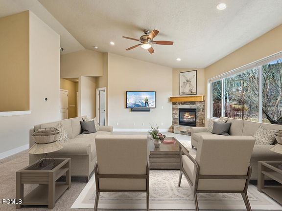 This beautifully well-maintained 3 bedroom, 2.5 bath home is nestled in the Burgi Hill Ranches subdivision located in the quaint idyllic mountain Midway community. It provides serene family living and checks all the boxes for the outdoor enthusiast. The open floor plan includes vaulted ceilings and natural light. The great room has a gas fireplace and opens into the wonderful kitchen, which boasts gorgeous granite counter tops, an island with seating with a separate dining area, and includes all appliances. This house offers several indoor and outdoor areas for gatherings with your family and friends. These outdoor living spaces offer views of wildlife, the seasonal changes, as well as provide the perfect settings for enjoying morning coffee or relaxation while you watch Midway's magical evening sunsets with your favorite beverage.