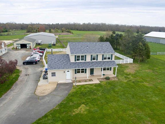 Perfectly laid out 10+ acre horse farm property complete with your own huge 70 x 120 steel construction indoor arena with GGT footing material. Property features a 4 bedroom, 2 1/2 half bathroom, 2 story center hall colonial style home, with over 2,600 square feet of living space. Enter the property driveway and enjoy the open sky view as the 10 acres unfold before you. Park in the 8 car gravel parking area, adjacent to the circular driveway, perfect for the whole family, visitors, guests and customers. From the arrival area, you have close, easy access to the 2 story hay barn and the wooden 6 Stable horse barn which then leads to the indoor arena and the 5 fenced outdoor pastures with frost free water faucets and electric. For long, relaxed riding enjoy the open acreage and outdoor arena in the rear of the property. The barn features include 6 matted stalls with ceiling fans and windows, a wash room, spacious tack room with built in storage as well as water and electric. Perfect property for your personal, professional, and commercial equestrian interests. Welcome the sunrise with you morning coffee and watch the sunset with a glass of wine from your patio in the fenced rear yard. Or in the chilly weather, move indoors to the huge Sun room with floor to ceiling windows, or sit by the fire in your 23 x 12 Family Room. House has a side entrance leading from the farm area to the mudroom, utility area and first floor half bath. 4th Bedroom is located on first floor with separate entrance, complete privacy and is adjacent to the first floor half-bath. The main house showcases a spacious entry hall leading to the Living Room and Formal Dining Room, or follow the center hall to the large recently upgraded kitchen. Grab your coffee from the kitchen and take care of business in the first floor is your office. The kitchen area opens to the vaulted ceiling, Family Room featuring a wood burning fireplace, and ceiling fan with sliding door to rear patio. Need more space for entertaining or holiday gatherings? How about a place to hide away, relax or just watch nature ? The Family Room has two sets of double doors opening to your huge Sun Room with floor to ceiling windows. The interior has been recently upgraded, featuring newer flooring, upgraded lighting fixtures, AC system and heating system 2 years old, roof 4 years old.Professional photos, video, and drone footage will be available as of Wednesday April 15th 2020.
