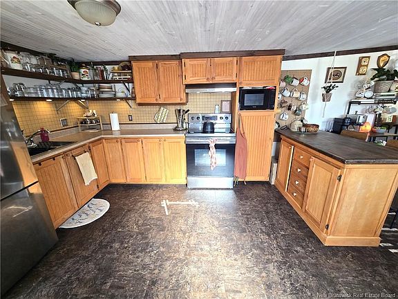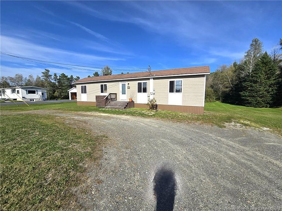 Guaranteed to Steal Your Heart! Discover this one-of-a-kind property, ideally located just minutes from Edmundston and close to all services and amenities. From the moment you arrive, you'll be charmed by its warm atmosphere and harmonious décor. The kitchen offers an abundance of storage and counter space, seamlessly connecting to a dining area-perfect for hosting family and friends, the bright and thoughtfully designed living room creates a welcoming and comfortable living space, the generously sized primary bedroom features plenty of storage and direct access to the balcony, where you can enjoy breathtaking views of the beautiful backyard, a full bathroom with a laundry area and a second well-sized bedroom with storage complete the interior. Outside, you’ll be captivated by the expansive backyard surrounded by mature trees - a true private oasis with incredible potential. A large shed and circular driveway complete this charming property. Contact now for more information and to book your tour.