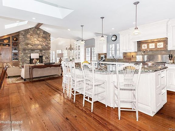Nestled among the trees, this unique custom-designed Dutch colonial features a spectacular high-end kitchen and great room addition with attached 1,000 sq. ft. deck for entertaining family and friends. This immaculate home offers 5 bedrooms, 2 family rooms, finished basement, 14 closets, 2 pantries, new roof, new water heater and extensive landscaping. Cozy up to the raised stone fireplace in the light-filled kitchen, which offers a 12-ft island, 2 dishwashers, DCS dual range, and a bar area with copper sink and wine frig. Truly a special home in a private and peaceful setting. Move right in!