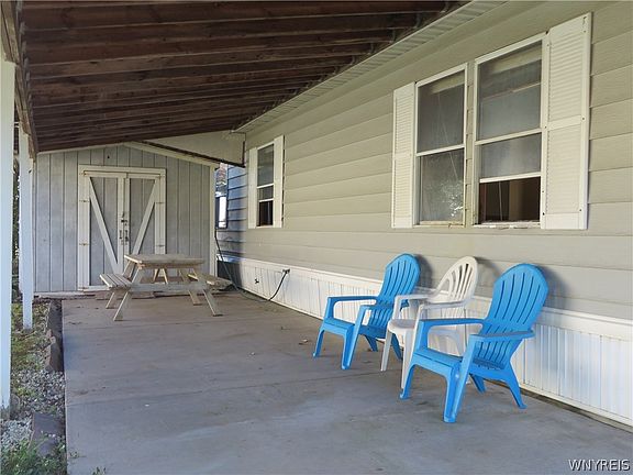 Attractive well maintained double wide features large living room opening to dining area and efficient kitchen. Small enclosed "foyer" at front entry. There is tiled flooring at doorway and wall to wall carpeting in living room and both bedrooms. Kitchen has laminate floors, oak cabinets, pantry, built-in china cabinet, all appliances stay (even washer and dryer). Two large bedrooms w/huge closets. Master also has an additional 11 X 5 walk in closet. Full bath is in excellent condition. 6 panel doors, partial (one side) tear off roof in 2016, vinyl fascia, new pressure treated wood front steps. Deep carport has excellent concrete surface and large storage shed. Window air conditioner is included. Interior photos coming soon. Showings begin on Thursday October 11th.