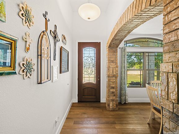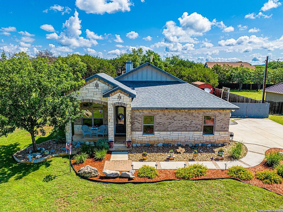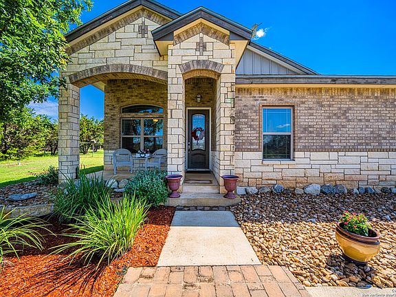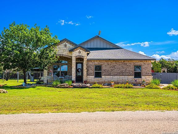 Extreme pride of ownership in this custom Bandera River Ranch Beauty. Home sits on 2 lots comprising of 1.22 acres. The non traditional features stand out making this home truly unique. As you walk up to the home, your concrete walkways & back patio areas are accented w/custom stone inlays. Two brick archways in the home tie in lovely to the exterior features. The Impressive kitchen features custom cabinetry, upgraded appliances, granite counters, & large island. A true Chef's dream. The Open floor plan is perfect for entertaining and includes large living area w/separate bar, sink, and wine cooler, and corner wood burning fireplace. Off the LR, a large covered back patio is a lovely extension of the indoor/outdoor living. The master suite at the back of the home is exceptional in size, and over looks the large and private yard. The on-suite bath has an impressive walk in shower, soaking tub, and custom walk in closet. 2 large guest rooms, custom storage & large laundry room. Also a formal dining room (or private office space at front of home) This home also features the adjacent lot, perfect for storing your RV with 30 & 50 amp hookups & gravel drive. Ask about BRR amenities