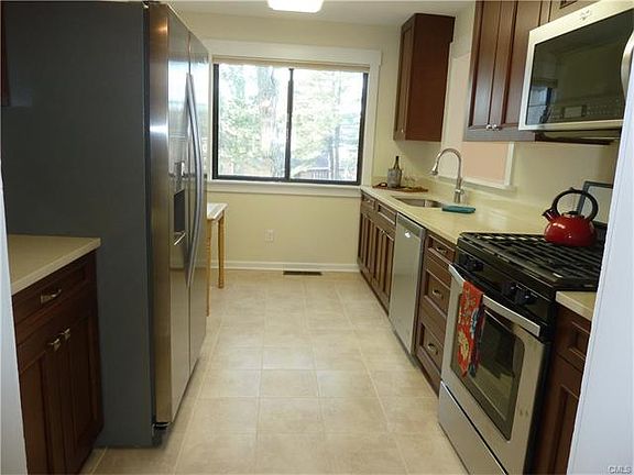 SPACIOUS WOLCOTT END UNIT LOCATED WITHIN WALKING DISTANCE TO THE SOUTH CLUB HOUSE. Brand new quality kitchen with cherry cabinetry, stainless steel whirlpool appliances and custom quartz counters. Two brand new baths designed in neutral tones. Sun-filled living/dining room with dramatic vaulted ceiling & fireplace. Spacious master bedroom suite with 2 large walk in closets & new bath. Private 3 season porch. Above grade finished lower level & additional storage room. Beautiful hardwood floors throughout first floor, freshly painted in neutral tones. CONVENIENT FRONT DOOR PARKING. GARAGE UNDER FOR EASY ACCESS. ORONOQUE VILLAGE 55+ ADULT COMMUNITY. AMENITIES GALORE: GOLF, POOL, TENNIS COURTS, CLUB HOUSE, FITNESS CENTER, NUMEROUS ACTIVITIES.