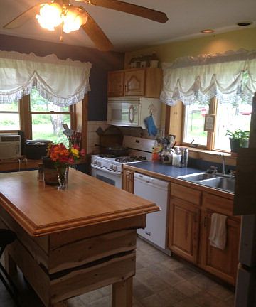 looking for a quaint Hobby Farm nestled quietly among the rows of Maple trees and Apple orchards, but still a short drive to town? This home has a Country style kitchen with 2 lovely large windows to enjoy your picturesque surroundings along with a handmade butcher block island for that extra space for preparing your families meals. Other amenities for you include; 2 very spacious green houses, a pond, an Intex pool with an attatched deck, a large sand pit, all sitting on a parcel of hardwoods.