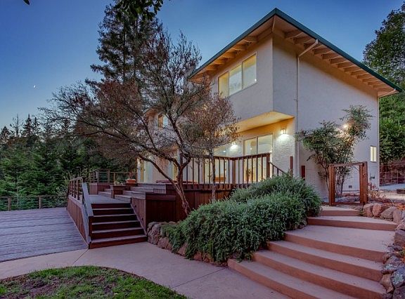 Imagine the serene lifestyle you can have living in this tranquil paradise with awe-inspiring views of a redwood forest that stretches from your home out to the glistening sea. Enjoy ocean views from almost every room in the home and views of nature in every direction. Night views are just as spectacular with unobstructed views of the Milky Way. This unique offering is nestled into 3.3 acres of pristine land featuring a beautiful 4 bd main home of custom design with soaring ceilings & walls of windows, updated kitchen & bathrooms, mostly new flooring, fresh interior paint and a 480sf garage. A special bonus is the 700sf guest cottage. Great commute location & 10-rated Happy Valley School District! Approximately 20 minutes to Los Gatos, 15 minutes to Scotts Valley, 20 minutes to Santa Cruz. Do not use GPS as it will take you down a dirt road. Click on virtual tour link to view 3D Walk Thru Tour! See home floorplan in the photo gallery.