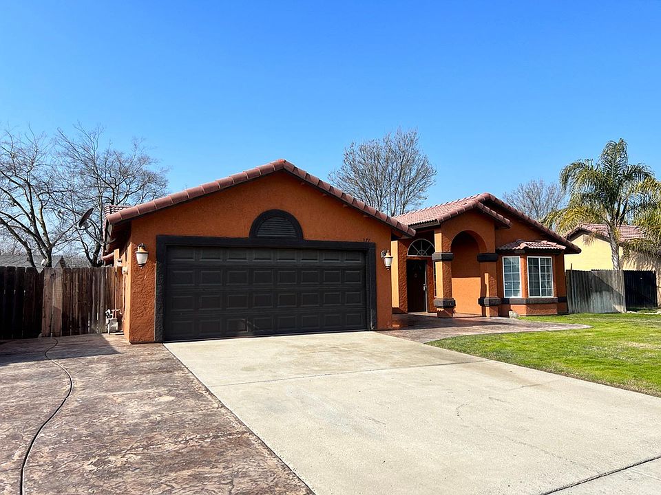 Welcome home to this beautiful ranch-styled house that has just been professionally cleaned and is move-in ready! This home was updated in 2017 with a new HVAC unit, water heater, carpet, flooring, 5 inch baseboards, crown molding, and paint. The bathrooms were also updated for a fresh modern look. A new refrigerator was added in 2019 which is also included. at 1672 square feet with three bedrooms and two bathrooms, a formal dining room and large living area, there's plenty of space for your growing family. There are built-in cabinets, in the hallways for extra storage. A big backyard with a covered patio for your family fun time and lots of room for the kids and pets to play. The two car garage includes an epoxy floor, plenty of cabinets and drawers throughout for lots of storage, or your own workshop! Front and backyards include an automatic irrigation system. There is RV parking on both sides of the house if you choose. There is a concrete patio area off the garage and a metal storage shed. Everything you need is here!