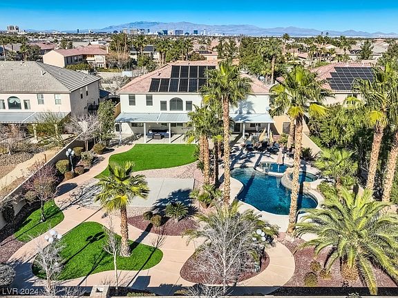 You’ve got to view this terrific home! HUGE lot with RV parking, 4 car garage, sparkling pool, 6 bed/ 4.5 bath including spacious guest en-suite on first floor. Located inside a gated community with easy commute to the Strip, airport, stadiums, shopping & more! Amenities include upgraded kitchen appliances including a built-in refrigerator, two dishwashers and dual ovens; water softener; fireplace; ceiling fans; bonus loft area; alarm system with cameras; washer & dryer; newer pool pump. Complete list of amenities and upgrades available. Please make appointment to view.