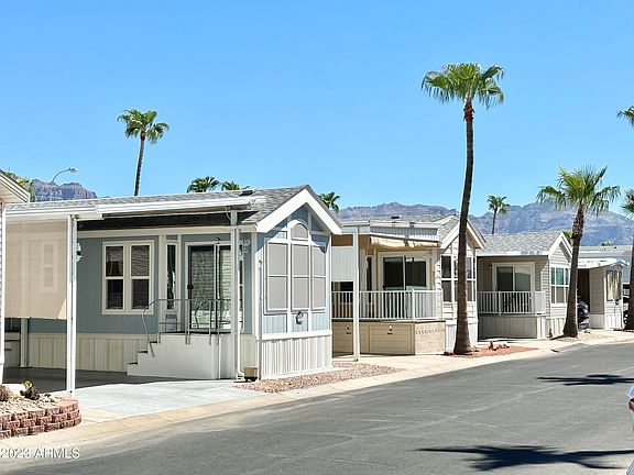 Don't miss looking at this STUNNER! 2008 CAVCO approx 400sq ft w/ UPGRADES GALORE! 1 bed, 1 bath offering a FANTASTIC FLOOR PLAN! PERFECTLY situated South facing & adjacent to the resort laundry & shower facilities! GREAT RESORT LOCATION! LARGE coated carport w/ plenty of room to park a truck! YOU will fall in love the minute you walk in! BEAUTIFUL wood look laminate flooring, nice kitchen counter space w/ NEW SMOOTH TOP FULL SIZE STOVE, NEW SINK & FAUCET, NEW MICROWAVE & RO DRINKING water system! ALL NEW COUNTER TOPS throughout! PLENTY of upgraded cabinetry for all your storage needs! NEW carpet in SPACIOUS bedroom w/ built in dresser area, large closet & queen size bed! LARGE walk in shower w/ nice vanity counter space awaits you!NEW 2inch FAUX MINIBLINDS throughout! FRESH NEW INTERIOR DESIGNER PAINT welcomes you! TASTEFUL NEW HIGH END furnishings included, just pack your personal belongings! DUAL PANE windows W/NEW SUNSCREENS great for energy efficiency! NEW DELTA WATER SOFTENER, STONE BOARD SIDING along w/ NEW EXTERIOR CUSTOM PAINT AND A BRAND NEW ROOF! THE LIST GOES ON....MOVE IN READY & has been WELL LOVED & UPGRADED! GREAT outdoor SHED PERFECT for additional storage needs or make it a hobby area! Let's not forget the STACKABLE WASHER/DRYER! ALL THIS ON A FULL CONCRETE SLAB! This is a MUST SEE! COME enjoy our AMAZING 55+ RESORT W/ tons of fun to be had. THIS SUNNY ESCAPE IS WAITING FOR YOU!