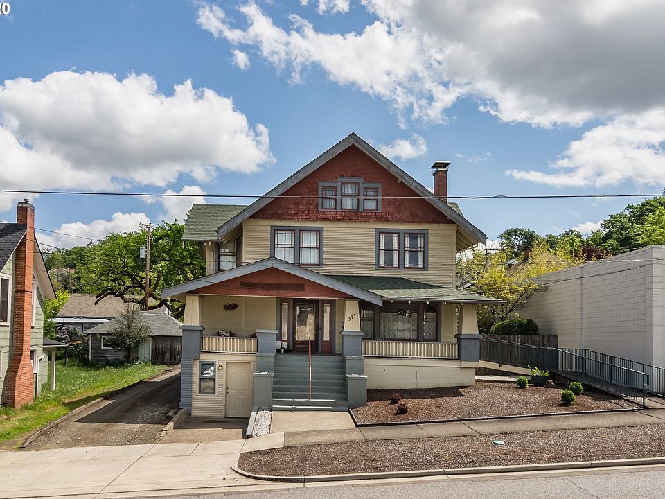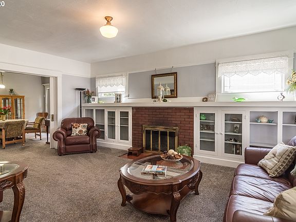 Beautiful craftsman style home with original details exudes personality from every nook & cranny. Wide covered porch perfect for summer sipping & fall porch swinging. Unique entryway, wood floors, open beams, and the grand fireplace with built-in cabinets & shelves add to the nostalgic warmth. Large open dining room for entertaining. Kitchen has been updated. Master on the main level. Home is handicap accessible. Lower level has two offices. Zoned for home or professional use. Partially fenced.