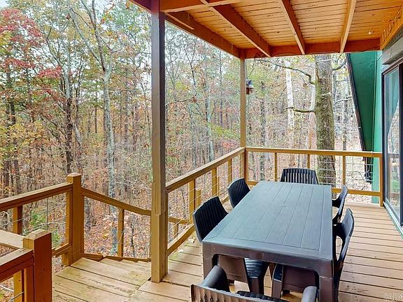 Turnkey Short Term Rental. Enjoy amazing mountain views from this cozy modified A-frame cabin. With an open layout and lots of natural light, it feels like home. Situated on an acre of private land, this peaceful retreat is just 15 minutes from Downtown Hot Springs. Whether you're out in nature or checking out downtown, this place is perfect for unwinding. The comfy living area has a sofa and TV for relaxing. The kitchen is fully equipped with all the appliances you need and has a breakfast bar for easy meals. Upstairs, there's another living room that leads out to a deck with fantastic views.