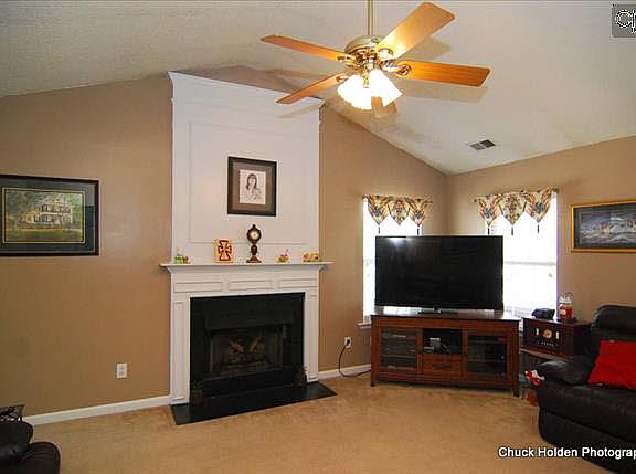 Great floor plan in sought after family neighborhood. Freshly painted LR w/ cathedral ceilings & gas fireplace. Eat-in kitchen features pantry, 2 yr old dishwasher, Samsung refrigerator less than 1 yr old. New disposal, updated lighting along w/2" blinds throughout. HVAC less than 2 months old. Beautiful master w/ palladium window & huge walk-in closet. Both BRs have walk-in closets for lots of storage. 2 car garage w/ epoxy floor, new garage door remotes. Outside enjoy a huge level private back yard. And a big front porch to fit your rocking chairs. New private alarm system. Water heater is less than 2 yrs old.
