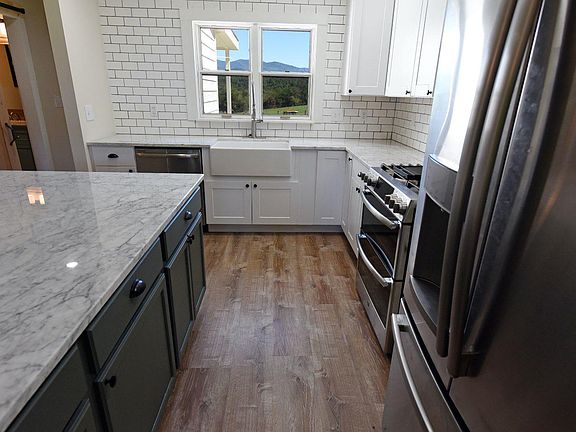 Amazing opportunity to own farm land with a great mountain view. The home is a 3 bedroom 2.5 bath that has been recently renovated. You get gorgeous sunrises over Brasstown Bald from the sunroom. Beautiful kitchen with a farmhouse sink and plenty of cabinet space. Additional screen porch off the dining room. Master bedroom and laundry are on the main floor and the two additional bedrooms are upstairs. The side and backyard are fenced for a dog. Wood fireplace with an insert. Detached garage for additional parking or farm equipment.