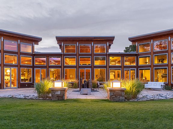 Modern design elements integrate the indoor and outdoor spaces of this 7,405 square foot contemporary home that sits adjacent to North Piney Creek and is nestled in the trees of the foothills of the Bighorn Mountains on 15.72 acres. Opportunity abounds for the outdoor enthusiast with easy access to hundreds of acres of state and national forest land just a short drive from the property. Three tranquil ponds stocked with Rainbow Trout are found on the manicured grounds. Wildlife viewing is a daily occurrence with deer, a variety of fowl and the occasional moose traveling through the scenic landscape. The dramatic angles of the roof, large windows and inviting front entry will immediately draw you inside where you will be enveloped by the warmth of wood, light and ceiling heights that reach up to seventeen feet high in several locations of the home. Sophisticated aesthetics flow throughout the central great room of the home which houses the living, dining, kitchen and bar areas. The chef's kitchen is beautifully appointed with Thermador appliances, leathered granite countertops, two islands, touch to open strand woven timber cabinetry, espresso bar, large pantry with a secondary oven and warming drawer. A temperature controlled wine cellar set to 58 degrees will hold 262 bottles and is located within a private cigar den with a ventilation system. The master suite is oriented to take advantage of the brilliant landscape with views of North Piney Creek and includes a home gym, laundry room, his & her closets, walk-in vault and an extravagant bathroom which features a dry sauna, steam shower, soaker tub and two floating vanities. The second story on the opposite end of the home has an additional plush two-bedroom guest suite as well as a sitting area with convenient outdoor access. Entertaining on Red Dog Ranch could not be easier with the immense flagstone patio with an outdoor kitchen equipped with a grill, cook tops and deep fryer located off the back of the home. The property boasts a charming guest cabin, a 2,548 square foot remodeled in 2015 ranch style home with an attached two car garage, an over 5,000 square foot heated shop and two more detached garages/shops. This magnificent one-of-kind luxury property truly provides all of the modem amenities with access to outdoor recreation one would hope for in finding a dream home away from the hustle and bustle of city life. All measurements are approximate.