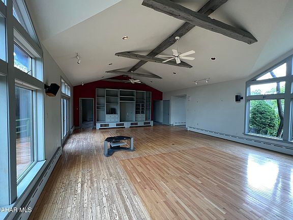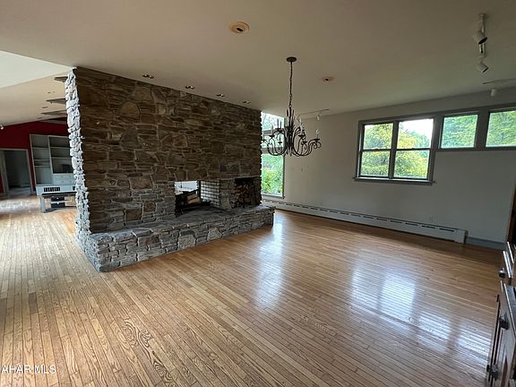 Unbelievable find!! Surrounded by game lands on two sides - 50 acre horse farm featuring an over 5000 sq ft house built in 1992, horse barn with 5 stalls, half bath, tack room, heated entry room etc., 3 stall barn with equipment storage, run in sheds, pond and board fenced pastures. The home contains 3 bedrooms 3.5 baths, large living room with vaulted ceiling, fireplace and hardwood floor, dining room, kitchen with custom cabinets, hot tub room with windows showing the view, master bedroom with large full bath off, custom spiral stairway, large art room, partially finished basement with double fireplace, large game room and bath. Too much to list. Home does need some tlc in some areas. Approx 1/4 mile lane through the woods gives sense of peace entering the property.