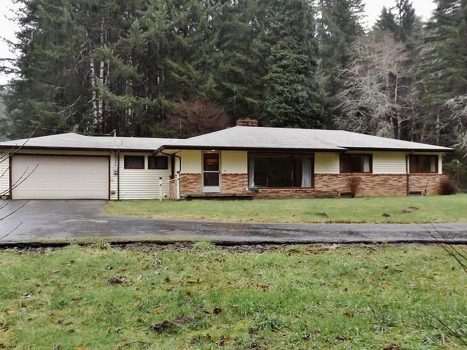 Country Living at its best in this over 1500 + sq.ft. charming retro 3 Bed. 1.5 Bath plus den with full daylight basement located on.46 acres.Well kept & loved home offers fireplace,heat pump all appliances included,covered porch plus 2 car attached garage,shop area & shed.Rumor has it there may even be wood floors under the carpet & newer roof.Nice forest views.